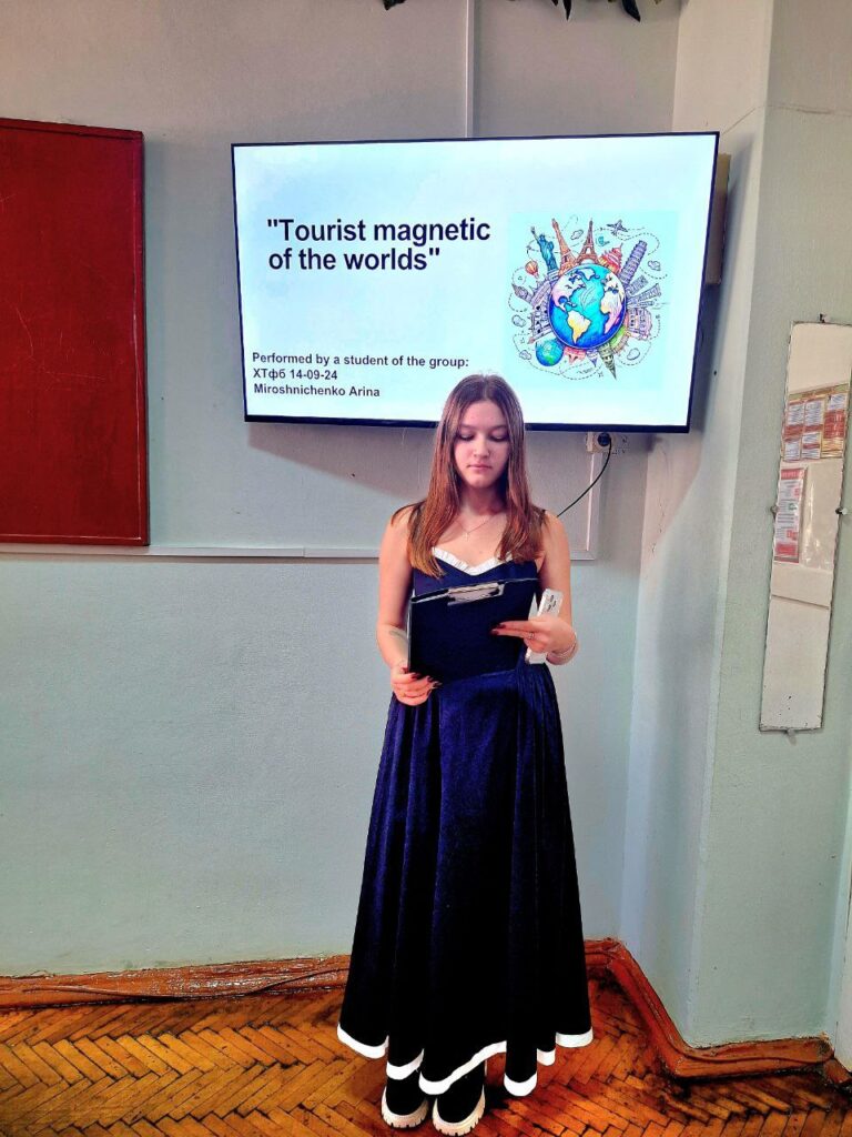 У своєму вітальному слові голова циклової комісії спеціальних дисциплін туристичного спрямування Тищенко Ольга Леонтіївна зазначила, що дослідження туристичних магнітів світу є важливим для підготовки майбутніх фахівців з туризму та рекреації, адже глобальних знання саме туристичних тенденцій дозволяє формувати конкурентоспроможний туристичний продукт і підвищувати рівень професійної підготовки студентів.
