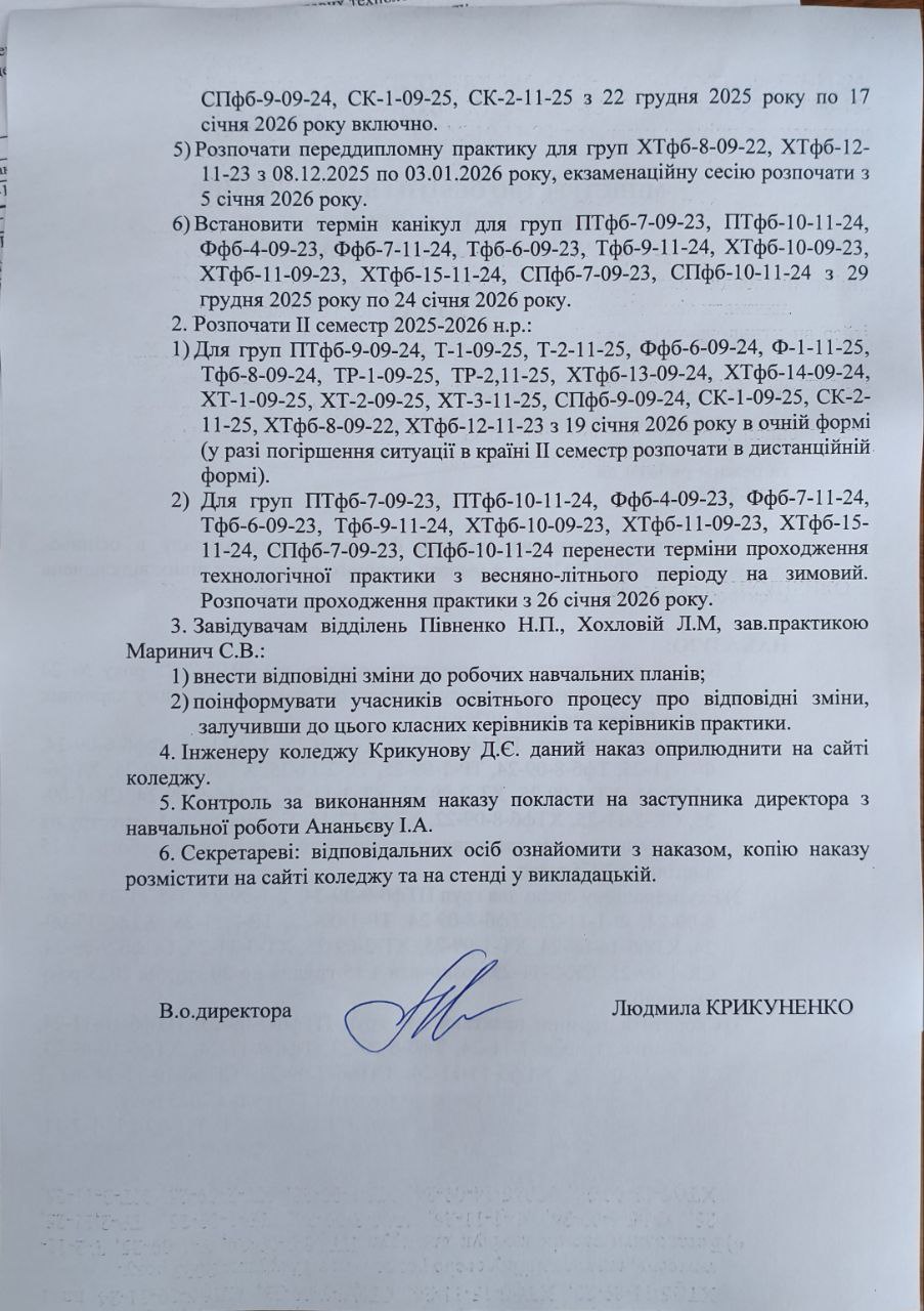 Головна » Новини » Наказ №35 від 14.11.2025р. Про внесення змін до наказу “Про особливості організації освітнього процесу та режим роботи на 2025-2026 н.р.”