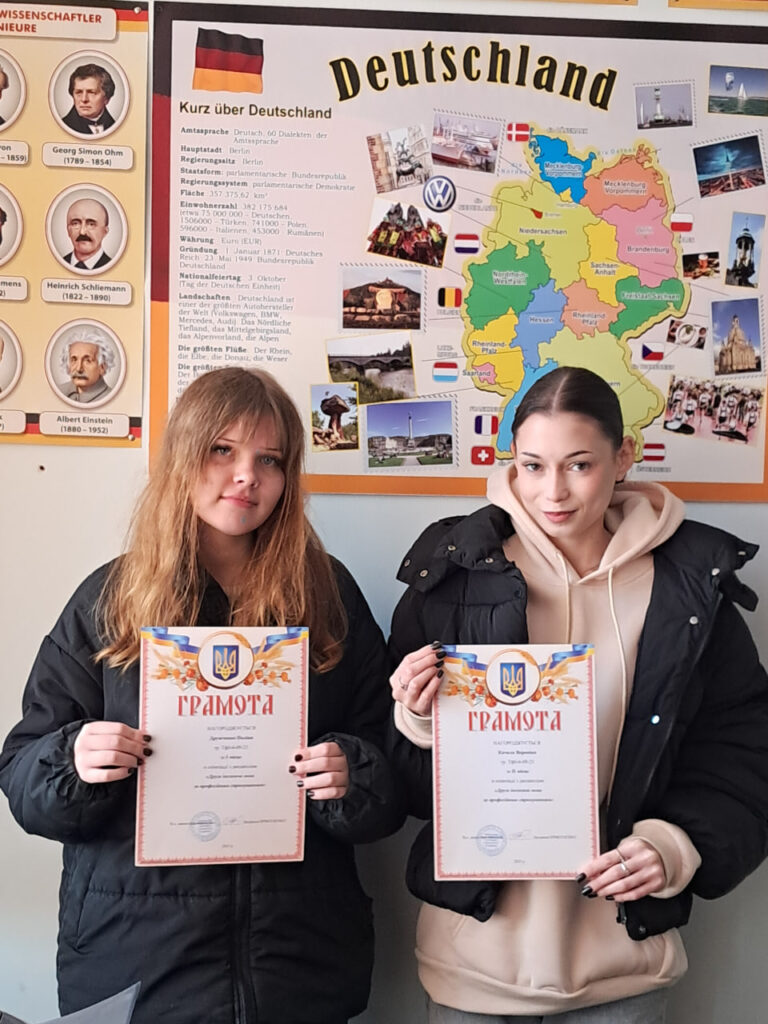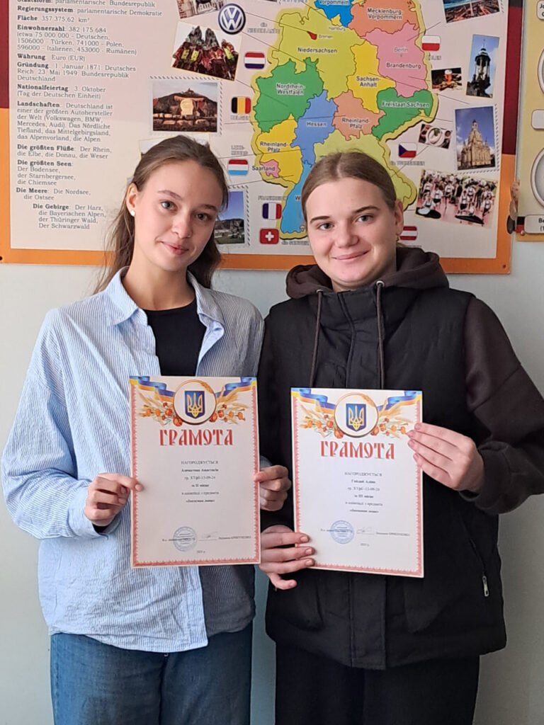 Перемогу в олімпіаді з дисципліни «Друга іноземна мова за професійним спрямуванням» здобули та були нагороджені дипломами: