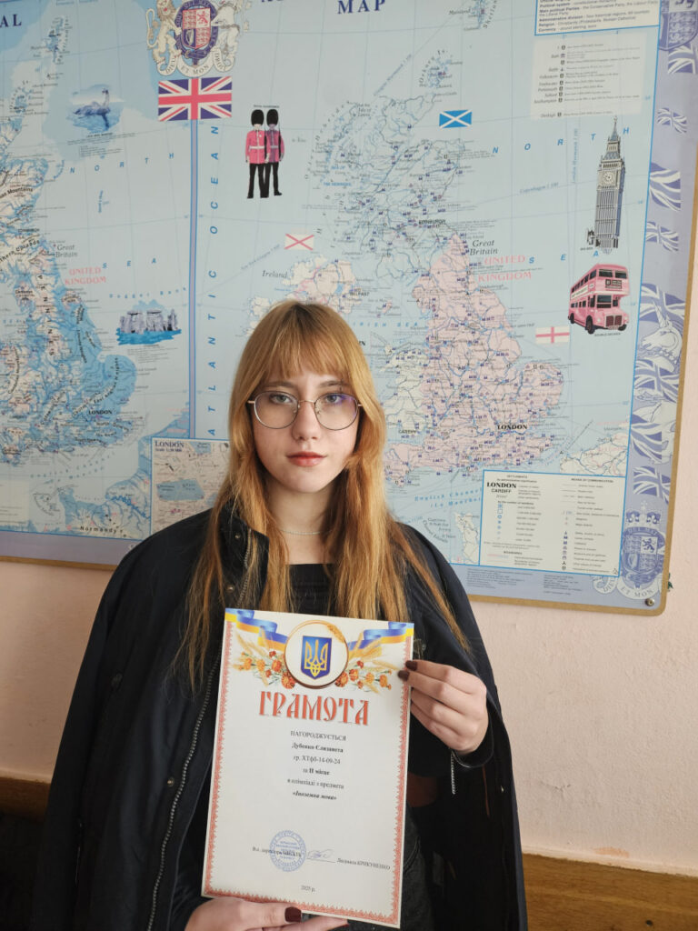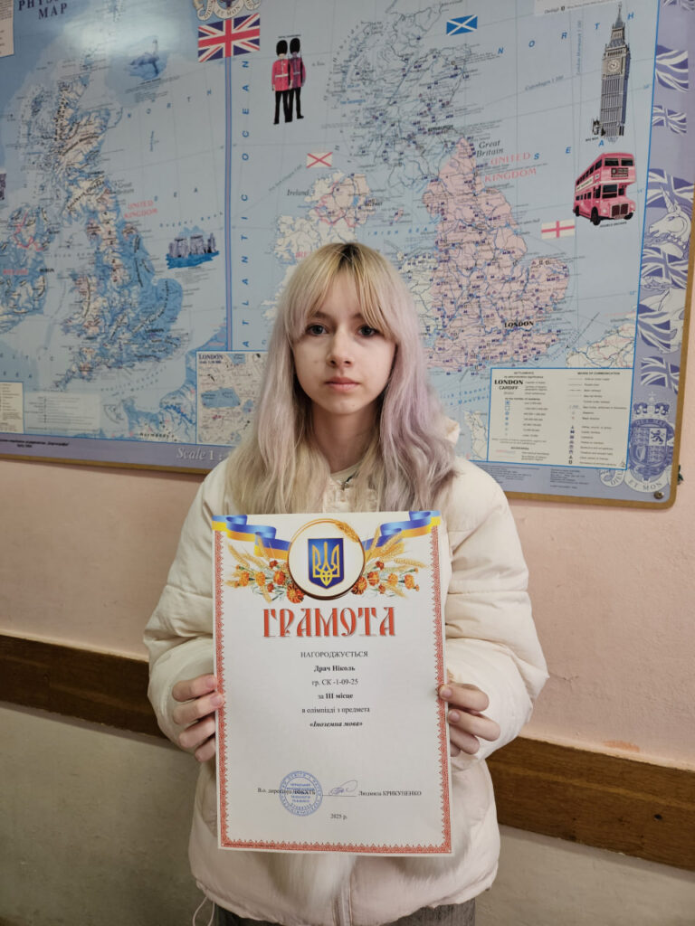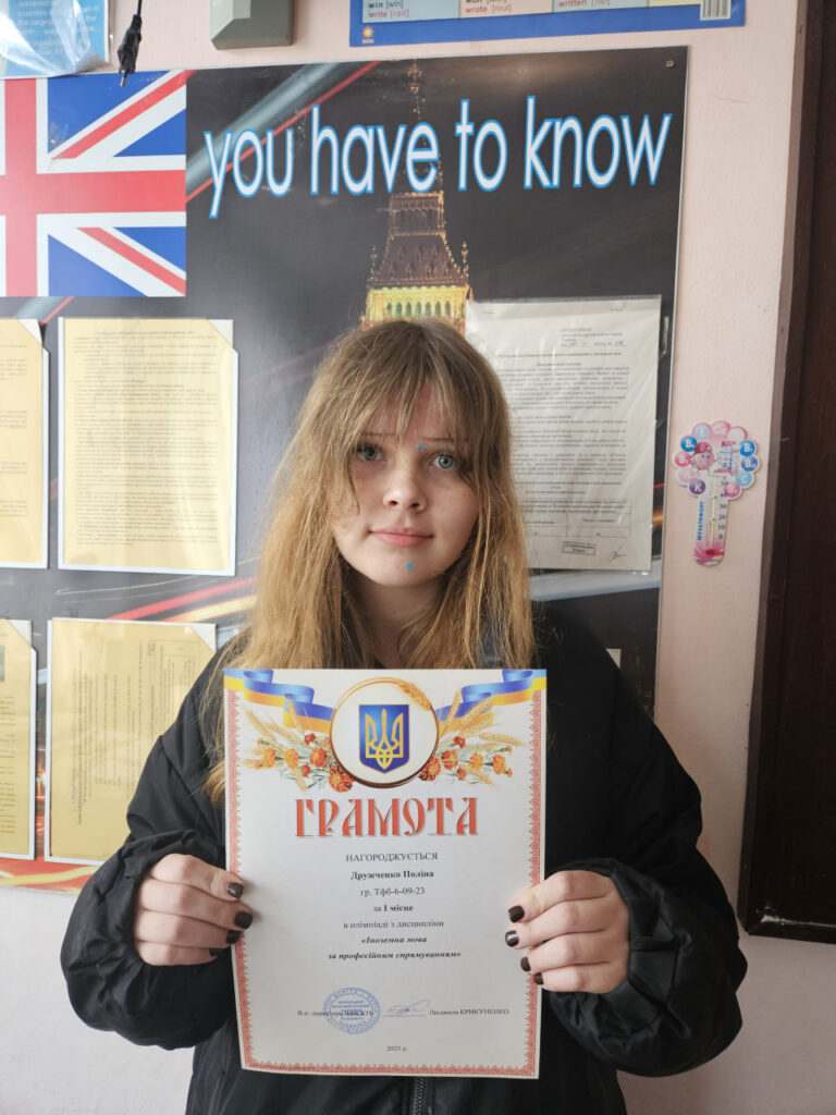 Перемогу в олімпіаді з дисципліни «Іноземна мова за професійним спрямуванням» здобули та були нагороджені дипломами: