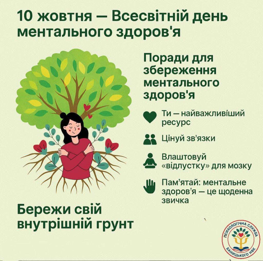 10 жовтня у світі та в Україні щороку відзначається Всесвітній день психічного здоров’я (World Mental Health Day) або День ментального здоров’я.