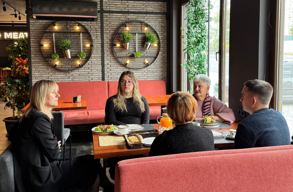 13 жовтня на базі закладу ресторанного господарства «Реберня На Вогні» відбулась зустріч викладачів технологічних дисциплін Черкаського фахового коледжу ХТБ зі стейкхолдерами. В ресторані, який вже багато років є базою практики, працюють випускники коледжу – Олена Ніколенко (директор закладу), Євген Шкляр (шеф-кухар), Андрій Богатирьов (су-шеф), Анастасія Шарова, тому бесіда була особливо предметною та конкретною.